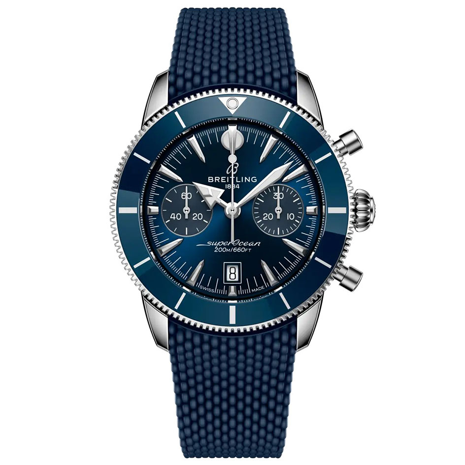 Made to move between the waves and the waterfront. The Superocean Heritage is no ordinary sea watch—it never was. When Breitling first launched it in 1957, it took a different tack from other dive watches of the era. The Ref. 1004 (a sleek time-only piece) and Ref. 807 (the world’s first dedicated dive chronograph) weren’t just about exploring the underwater world—they were about looking good doing it. The spear-and-arrow hands, anodized rotating bezel, and naturally sleek proportions made it a favorite of stylish adventurers who lived for the sea and the scene. Today, that philosophy is still at the core of the Superocean Heritage. It’s got the soul of the 1950s, but designed for today. The latest Superocean Heritage builds on everything that made the original distinctive—and sharpens it. The chronograph is powered by the Breitling Manufacture Caliber 01, Breitling’s industry-leading timekeeping movement. A ceramic-inlayed bezel adds exceptional scratch resistance, while integrated mesh-metal or mesh-rubber bracelets fit snugly against the case, secured with folding clasps for a clean, watertight finish. Tone-on-tone subdials, a discreet date window at six o’clock, and the original signature hands—arrow for hours, spear for minutes—ensure legibility and balance, above or below the surface.