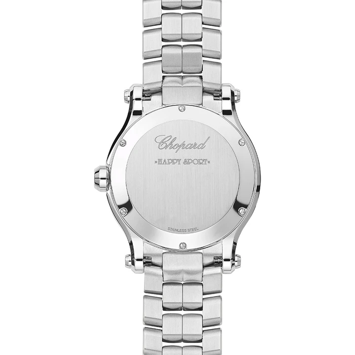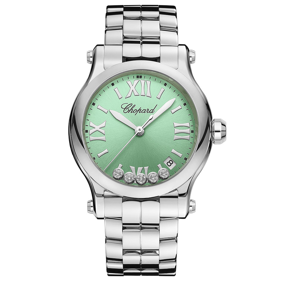 Chopard Happy Sport 278582-3011 has Quartz movement, 36 mm case size, Stainless Steel case material, Green dial and bracelet.