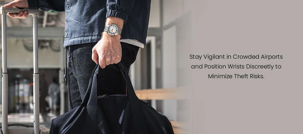 In busy terminals, public transport, or shared rides, position wrists discreetly – long sleeves, jackets, or low-key positioning reduce visibility to opportunists. Avoid frequent adjustments or checks that signal value. For multi-leg journeys, re-secure pieces immediately after each segment. These luxury watch travel tips keep your watch safe at the airport, avoiding wastage of time and any threats of losing valued watches.