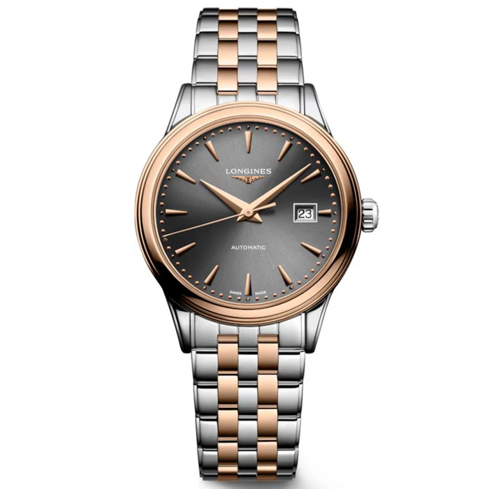 The Longines Flagship Classic L4.374.3.78.7 has an automatic movement, 3 Bar (30 meters) water resistance, Black dial color, Stainless Steel & Pink Gold Plated case material and Bracelet.