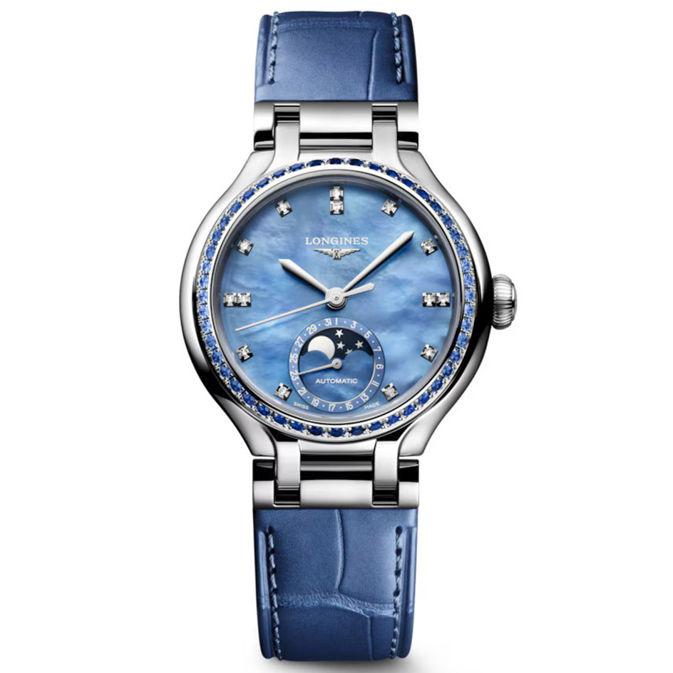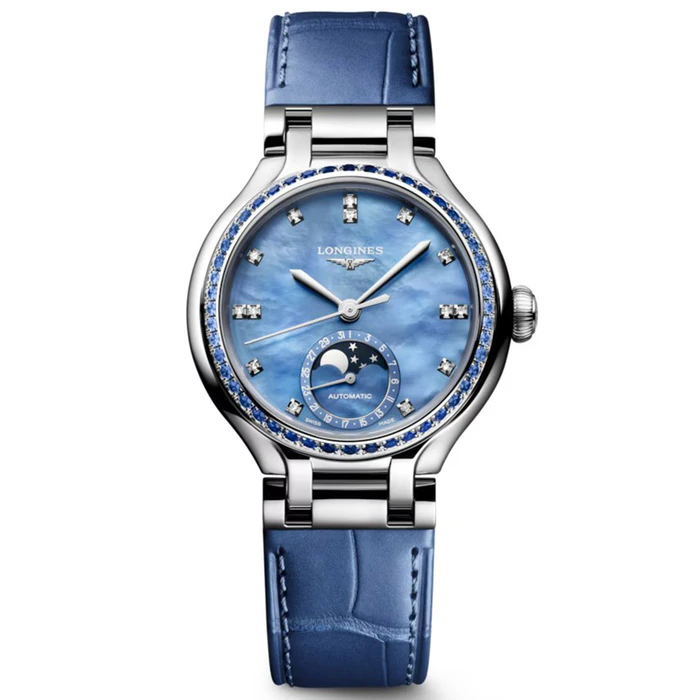 The LONGINES PrimaLuna collection embodies elegance and femininity. Crafted with meticulous attention to detail, its celestial influence is reflected in graceful curves and delicate lines. Whether adorned with diamonds, sapphires, or featuring minimalist dials, each LONGINES PrimaLuna timepiece radiates a beauty that transcends fleeting trends.