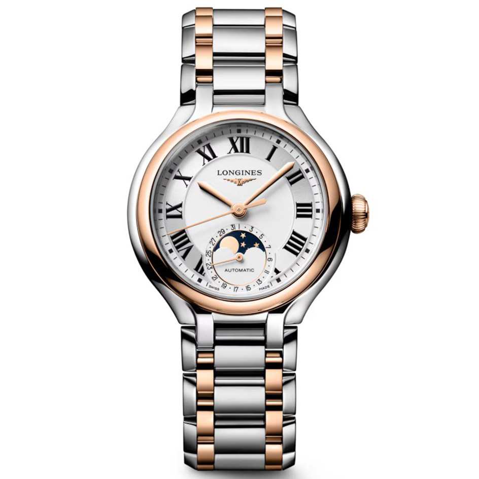 The Longines PrimaLuna L8.126.5.71.7 has a automatic movement with 3 Bar (30 meters) of water resistance, Ivory dial color, Stainless Steel & Yellow Gold Plated case material & bracelet.