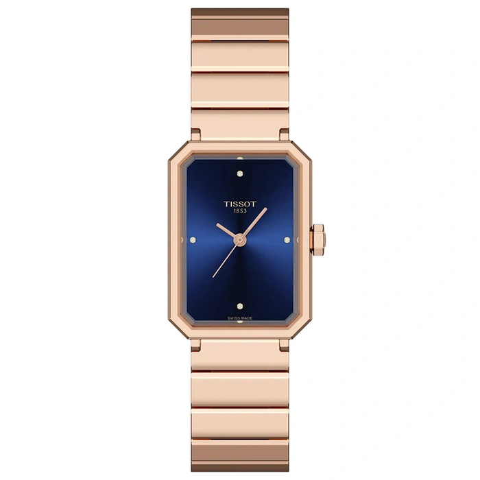 The SRV watch is inspired by the Art Deco times, developed in the 1920s. This time is characterised by geometric shapes and abstract patterns, become a dominant style in architecture, interior design, fashion and graphic arts. While the SRV is directly inspired by a model from 1975, that very design was itself a reinterpretation of Tissot’s earlier creations from the 1920s.The SRV’s quartz movement delivers precision that empowers to move forward fiercely and, with the End-of-Life indicator, the SRV anticipates her next move, so she’s always prepared. More than a name, SRV stands for, Sapphire Rectangle V: a faceted sapphire glass with a rectangular silhouette, and the ‘V’ a nod to its 5-bar water resistance, symbolised by the roman number 5.