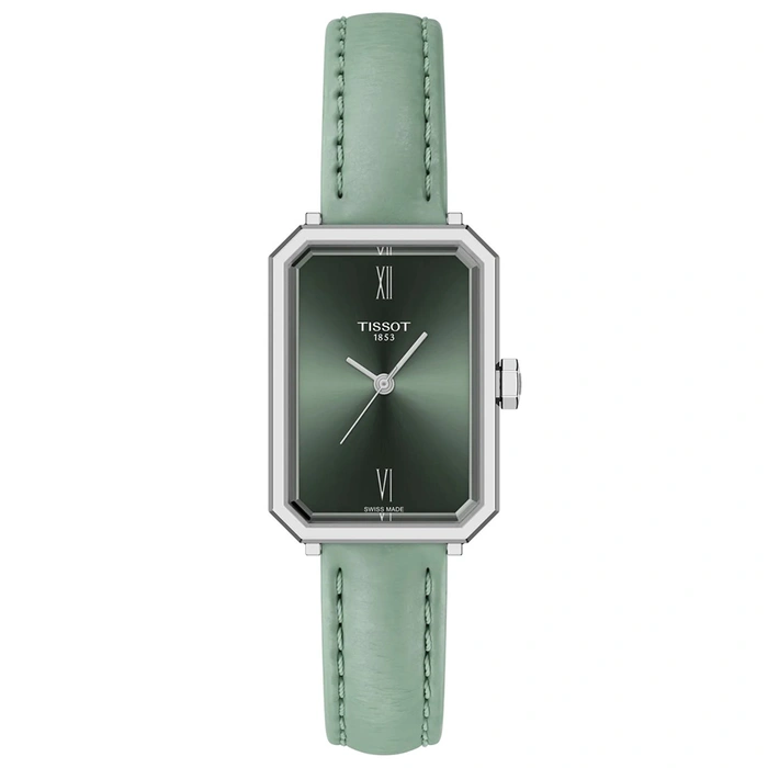 The SRV watch is inspired by the Art Deco times, developed in the 1920s. This time is characterised by geometric shapes and abstract patterns, become a dominant style in architecture, interior design, fashion and graphic arts. While the SRV is directly inspired by a model from 1975, that very design was itself a reinterpretation of Tissot’s earlier creations from the 1920s.The SRV’s quartz movement delivers precision that empowers to move forward fiercely and, with the End-of-Life indicator, the SRV anticipates her next move, so she’s always prepared. More than a name, SRV stands for, Sapphire Rectangle V: a faceted sapphire glass with a rectangular silhouette, and the ‘V’ a nod to its 5-bar water resistance, symbolised by the roman number 5.