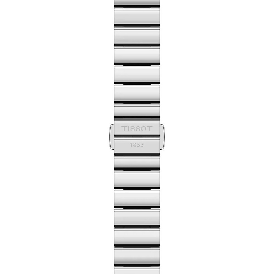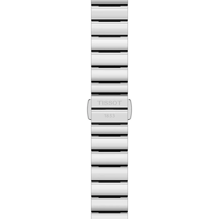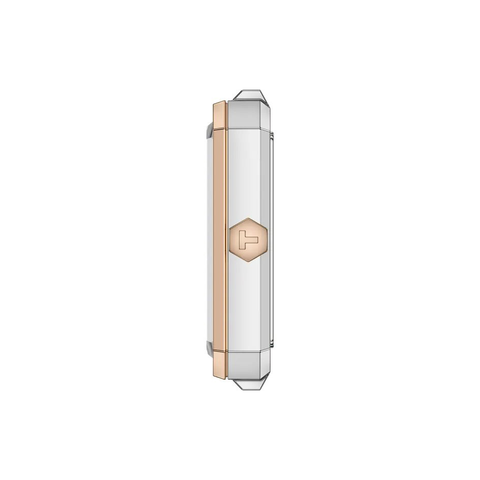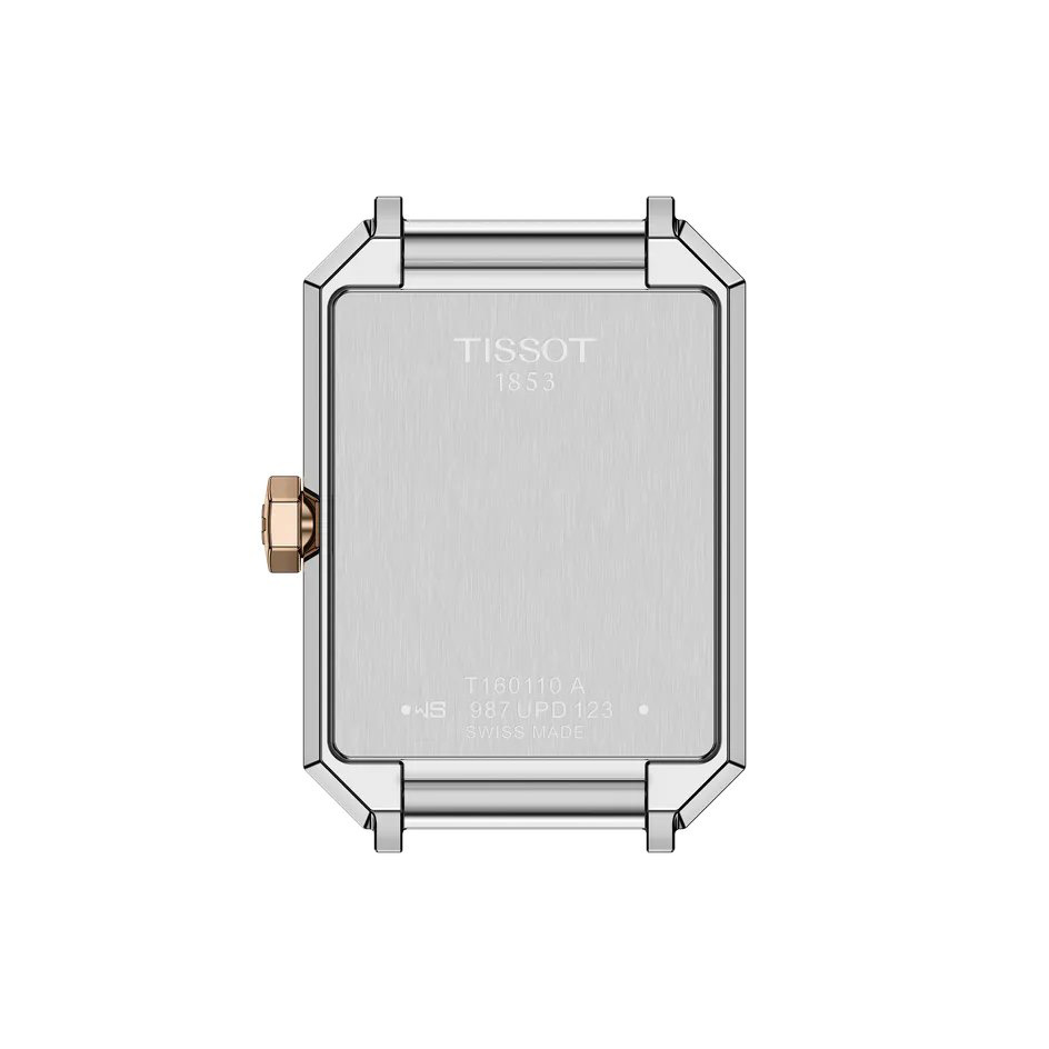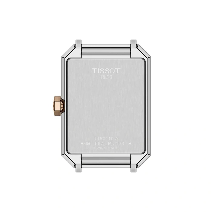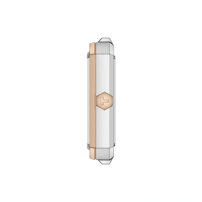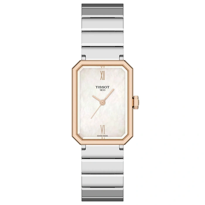 he SRV watch is inspired by Art Deco, a distinctive style which flourished in the 1920s. Characterized by geometric shapes and abstract patterns, it became a dominant style in architecture, interior design, fashion and graphic arts. While the SRV is directly inspired from a model from 1975, that very design was itself a reinterpretation of Tissot’s earlier creations from the 1920s. SRV stands for Sapphire Rectangle V, the perfect name for a faceted sapphire glass with a rectangular silhouette, and a 5-bar water resistance, symbolized by the roman number 5. Its quartz movement delivers reliable precision while the End-Of-Life indicator lets you know when it’s time for a battery change. This rectangular watch with a mother-of-pearl dial will elevate your look and offer you confidence and comfort. The metal bracelet is comfortable, robust, easy to clean and long-lasting.
