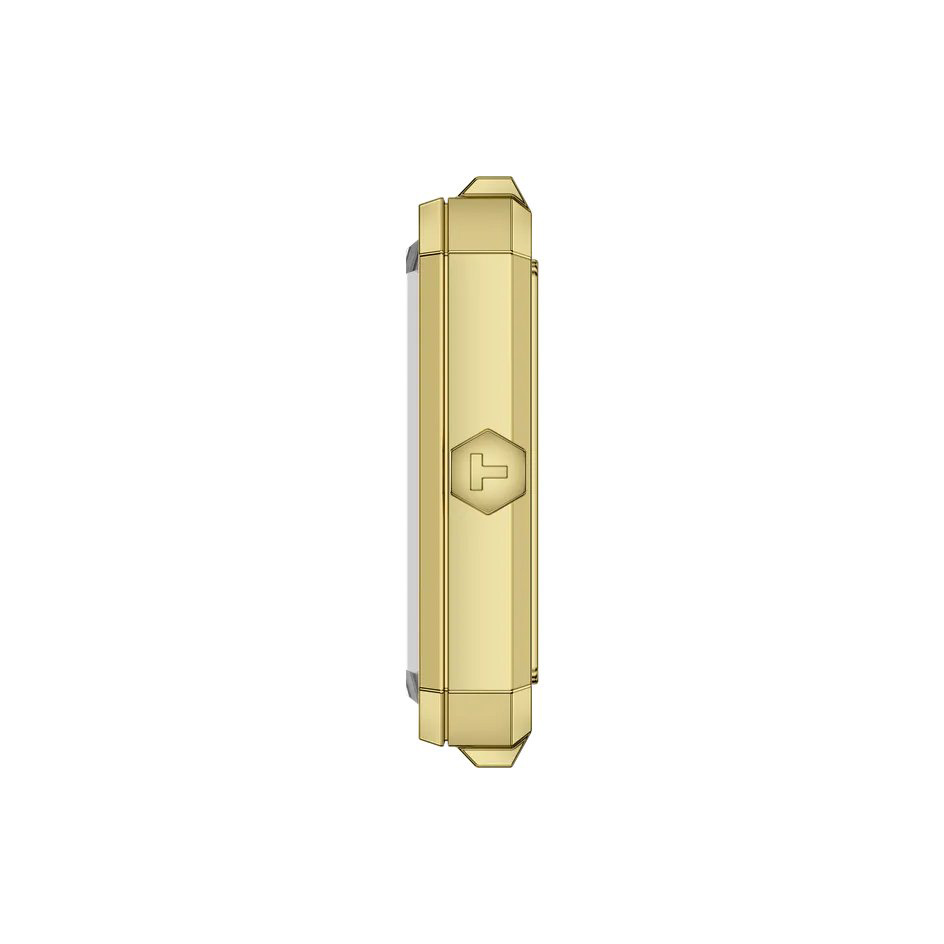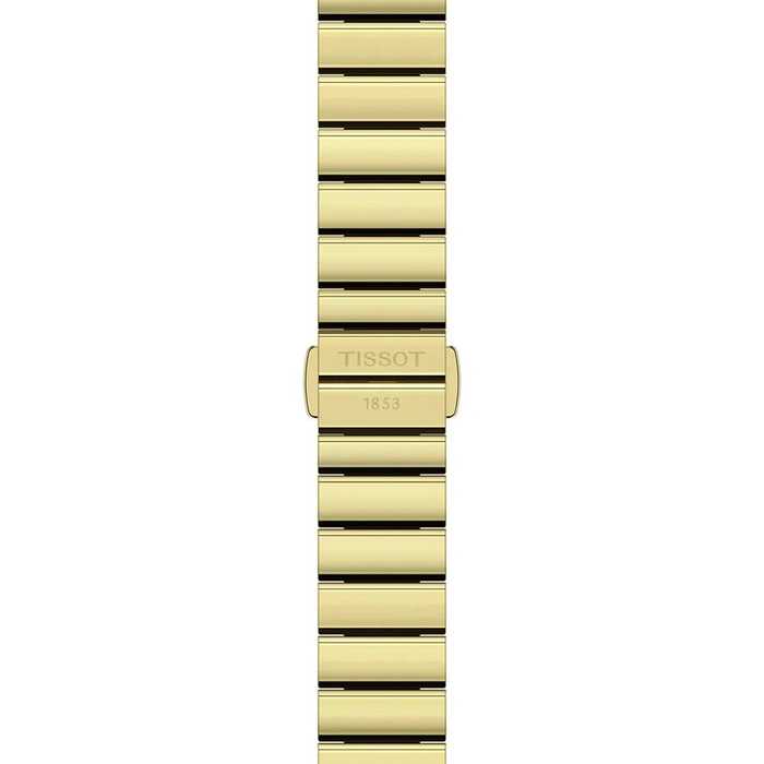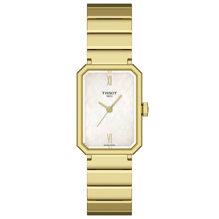 The SRV watch is inspired by Art Deco, a distinctive style which flourished in the 1920s. Characterized by geometric shapes and abstract patterns, it became a dominant style in architecture, interior design, fashion and graphic arts. While the SRV is directly inspired from a model from 1975, that very design was itself a reinterpretation of Tissot’s earlier creations from the 1920s. SRV stands for Sapphire Rectangle V, the perfect name for a faceted sapphire glass with a rectangular silhouette, and a 5-bar water resistance, symbolized by the roman number 5. Its quartz movement delivers reliable precision while the End-Of-Life indicator lets you know when it’s time for a battery change. This rectangular watch with a mother-of-pearl dial will elevate your look and offer you confidence and comfort. The metal bracelet is comfortable, robust, easy to clean and long-lasting.