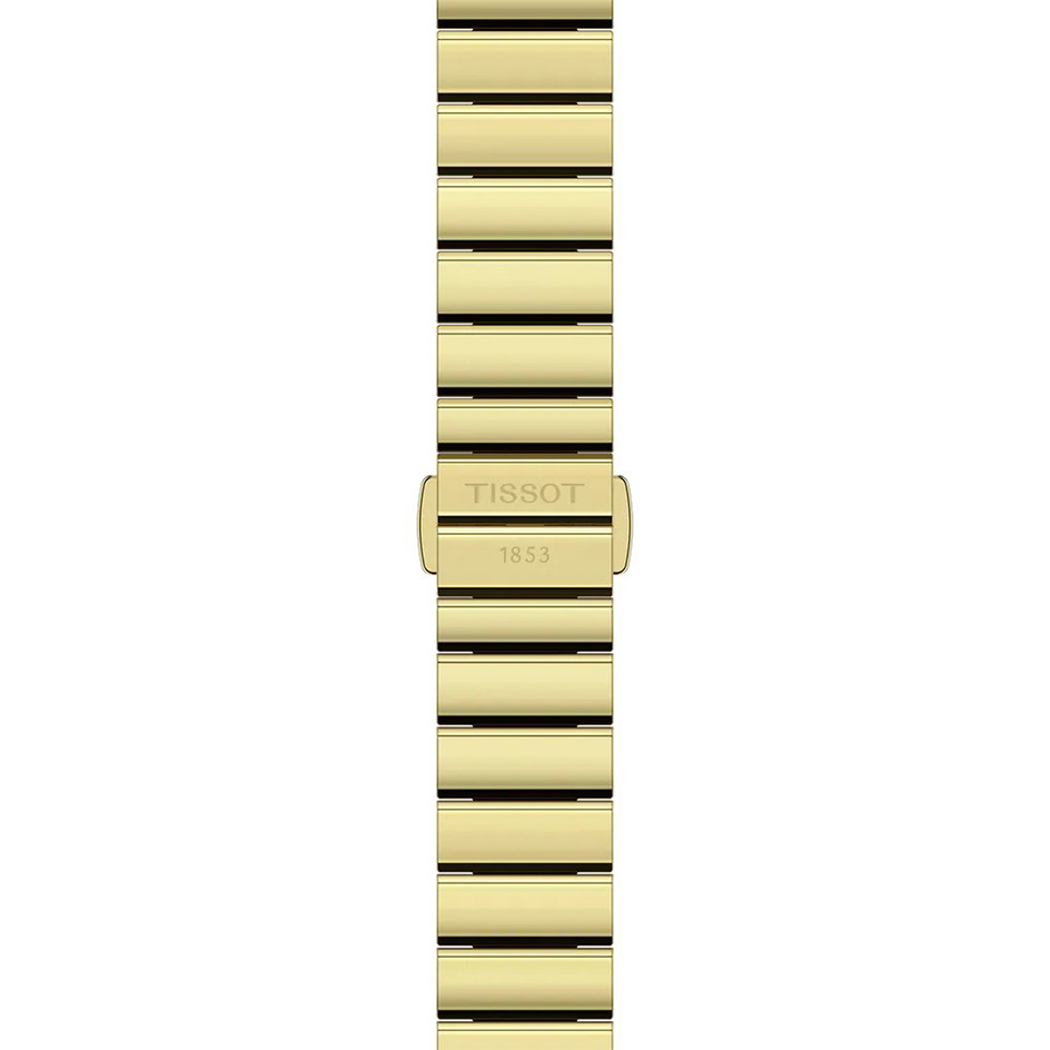 The Tissot SRV T160.110.33.113.00 has a quartz movement with 5 Bar (50 meters) of water resistance, Mother-of-Pearl dial color, Stainless Steel & Yellow Gold PVD Coating Case material and bracelet.