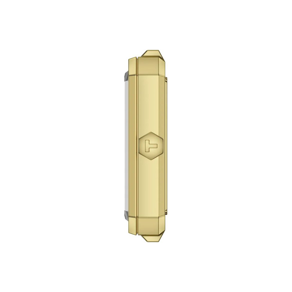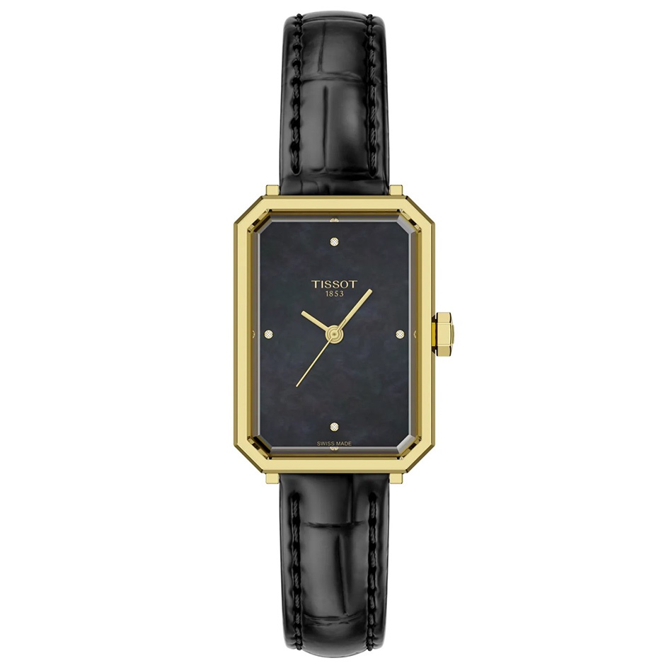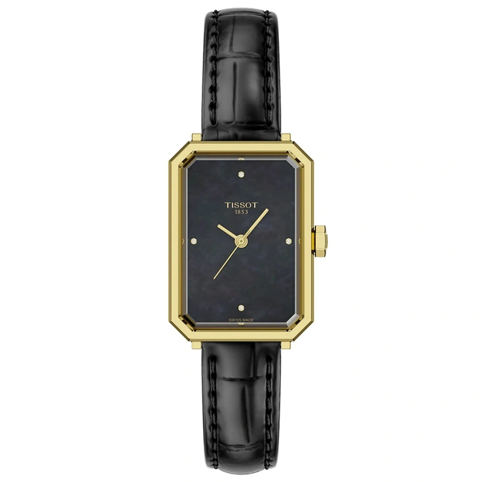 The SRV watch is inspired by the Art Deco times, developed in the 1920s. This time is characterised by geometric shapes and abstract patterns, become a dominant style in architecture, interior design, fashion and graphic arts. While the SRV is directly inspired by a model from 1975, that very design was itself a reinterpretation of Tissot’s earlier creations from the 1920s. The SRV’s quartz movement delivers precision that empowers to move forward fiercely and, with the End-of-Life indicator, the SRV anticipates her next move, so she’s always prepared. More than a name, SRV stands for, Sapphire Rectangle V: a faceted sapphire glass with a rectangular silhouette, and the ‘V’ a nod to its 5-bar water resistance. The leather strap stands out by its evolution over time. It adapts to the wearer's wrist, offering comfort and a unique fit.